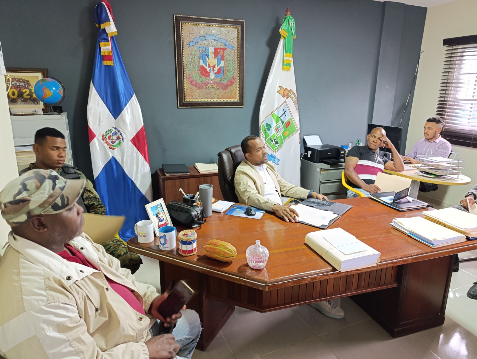 La reunión contó con la presencia de Carlos De La Rosa, Director Provincial Interino de la Defensa Civil de El Seibo, Diomedes Franco, Intendente del Cuerpo de Bomberos, Pedro Solano, Director Distrital de la Defensa Civil, los Alcaldes Pedáneos José Miguel Lizardo y Edwin Ortega, así como una representación del ERD y la PN.